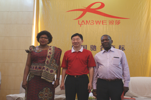 坦桑尼亞工貿部常務秘書長喬伊斯、貿易發展局總干事哈希姆?哈勒凡與董事長合影