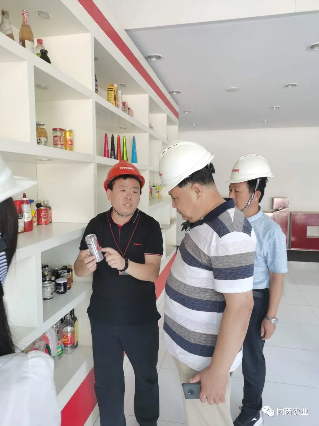 沃迪智能工作人員向同芮農業科技董事長一行展示果蔬加工成品