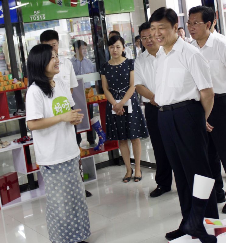 李源潮副主席十分關(guān)心企業(yè)員工的福利情況,和當(dāng)?shù)攸h委政府對(duì)電商發(fā)展的扶持政策及兌現(xiàn)情況。他還特別關(guān)心浪莎電商發(fā)展,詢問(wèn)發(fā)展中有無(wú)遇難題,工作人員都一一做了回答,李源潮副主席欣慰地笑了。