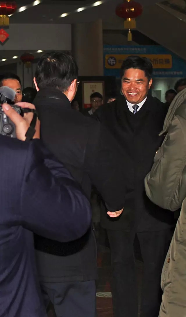 上午9點,市委書記盛秋平、代市長林毅抵達(dá)商貿(mào)城四區(qū)南門,一下車就給商戶們發(fā)起春聯(lián),“生意興榮”、“財源廣進”討喜的祝詞引得人們眉開眼笑。