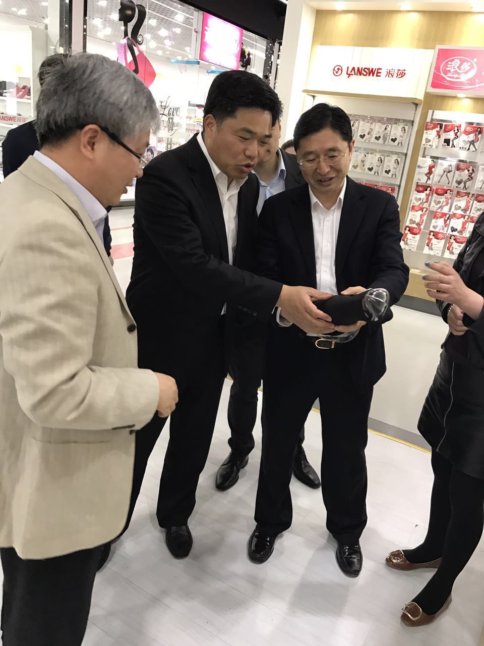 周柳軍司長參觀了公司展廳,領略了襪業(yè)航母的風采后贊嘆不已,在肯定了成就的同時,周司長還提出了一些想法和建議,浪莎董事長深受啟迪,并馬上著手落實。