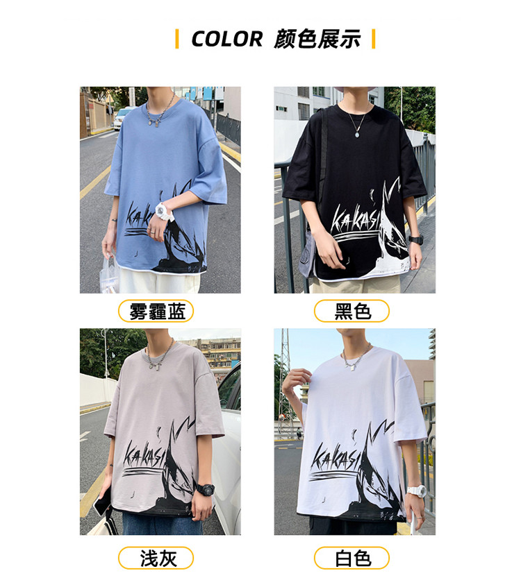 純棉舒適】夏季新款男士圓領(lǐng)短袖時(shí)尚火影印花半袖T恤