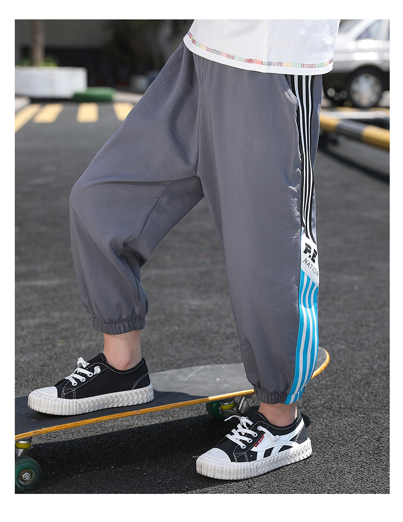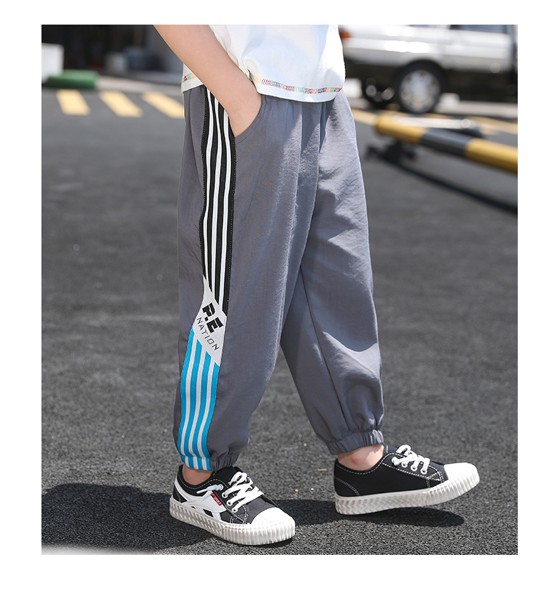 浪莎男童褲子運動長褲子兒童裝2021新款夏裝洋氣中大童百搭束腳褲