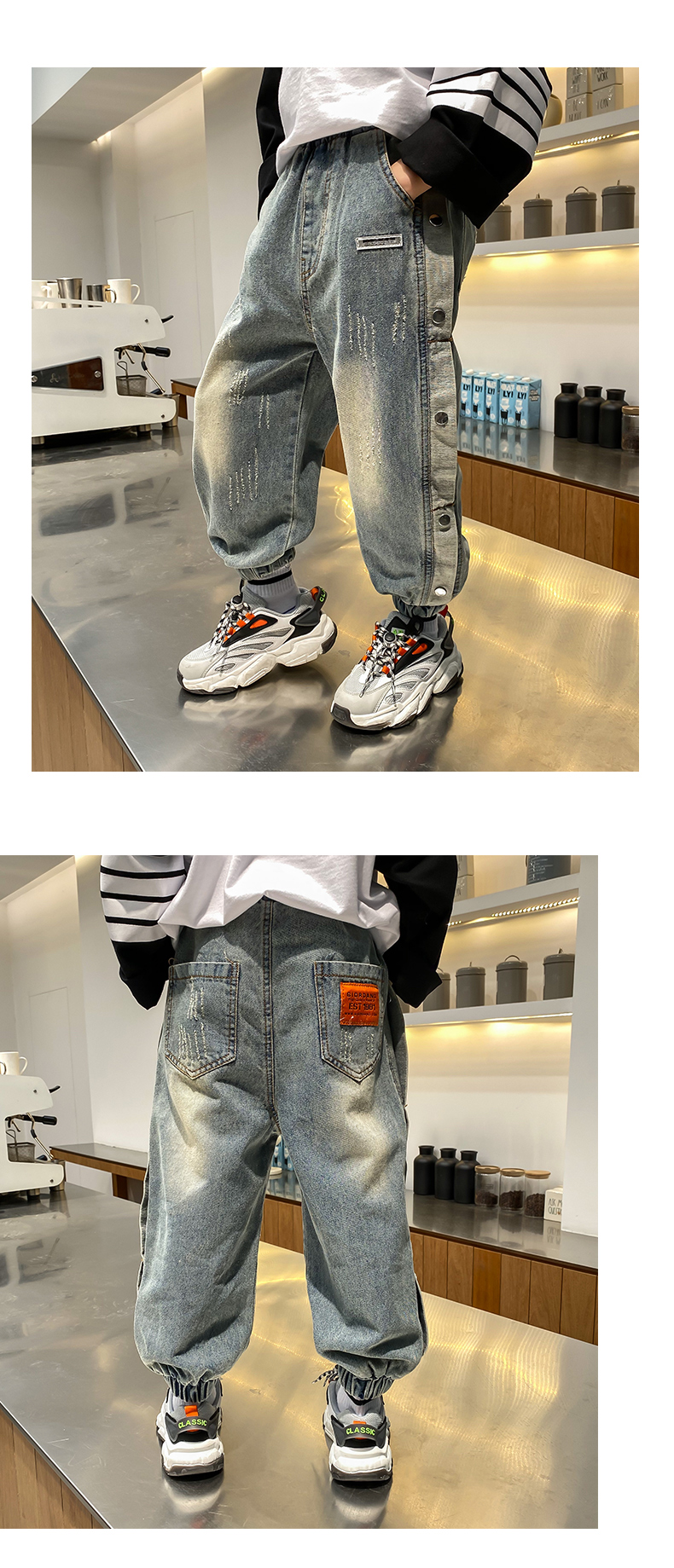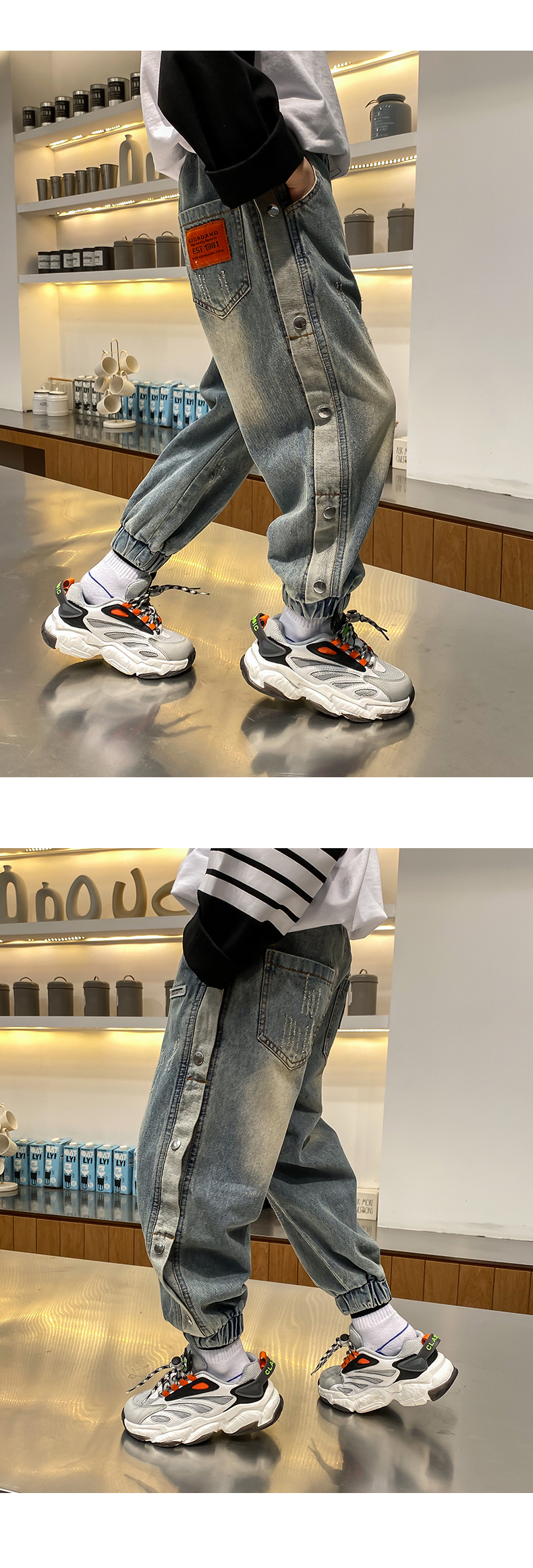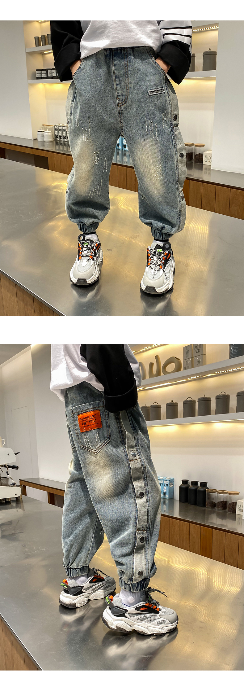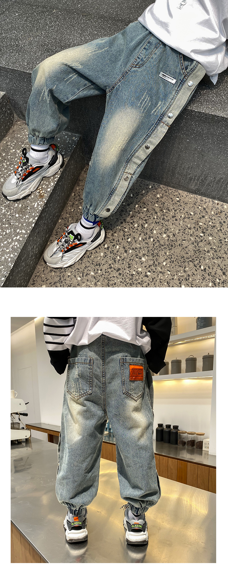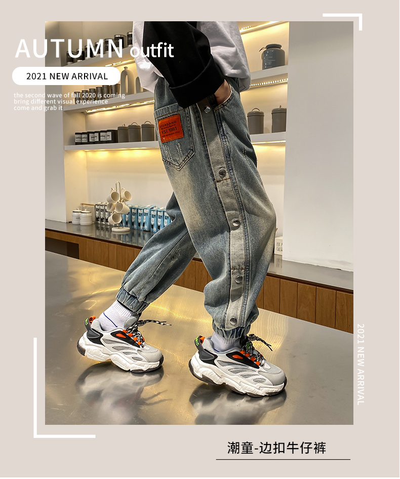 童裝男童洋氣邊扣牛仔長褲兒童春夏褲子2021春裝新款中大童韓版潮