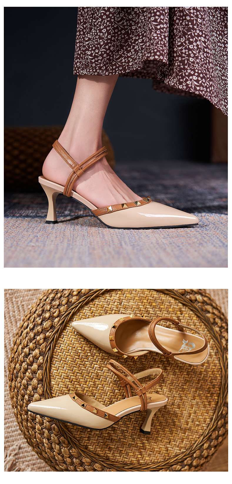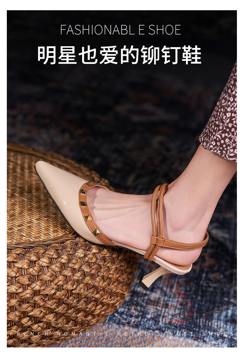 包頭涼鞋女2021新款鞋子女夏季高跟鞋后空一字帶細(xì)跟真皮時(shí)裝涼鞋