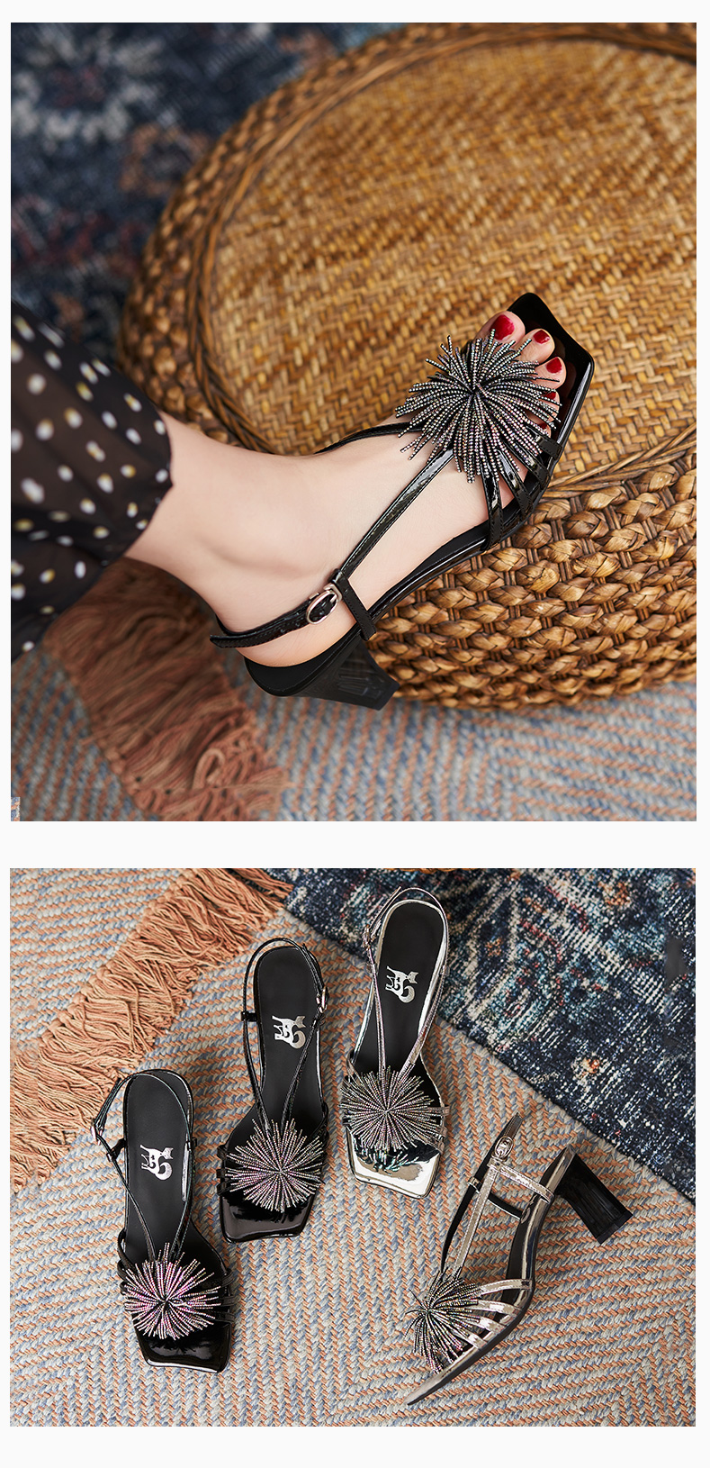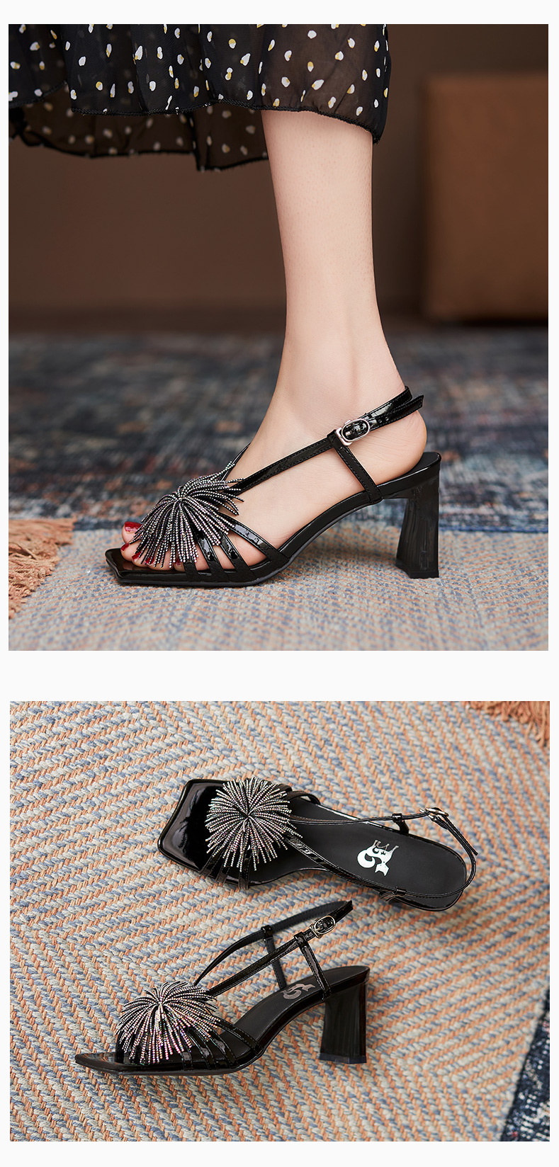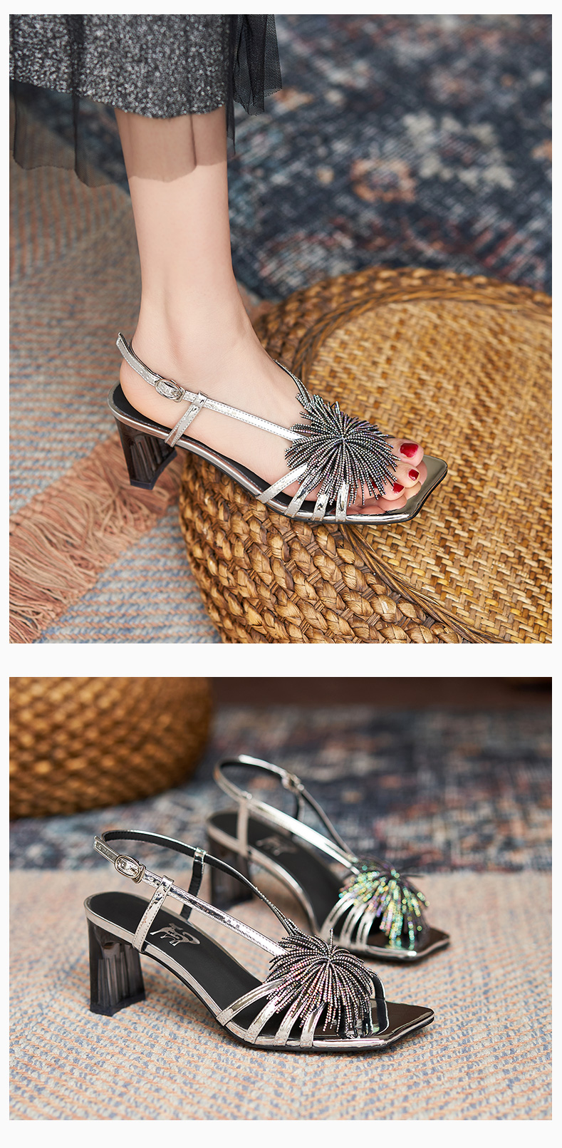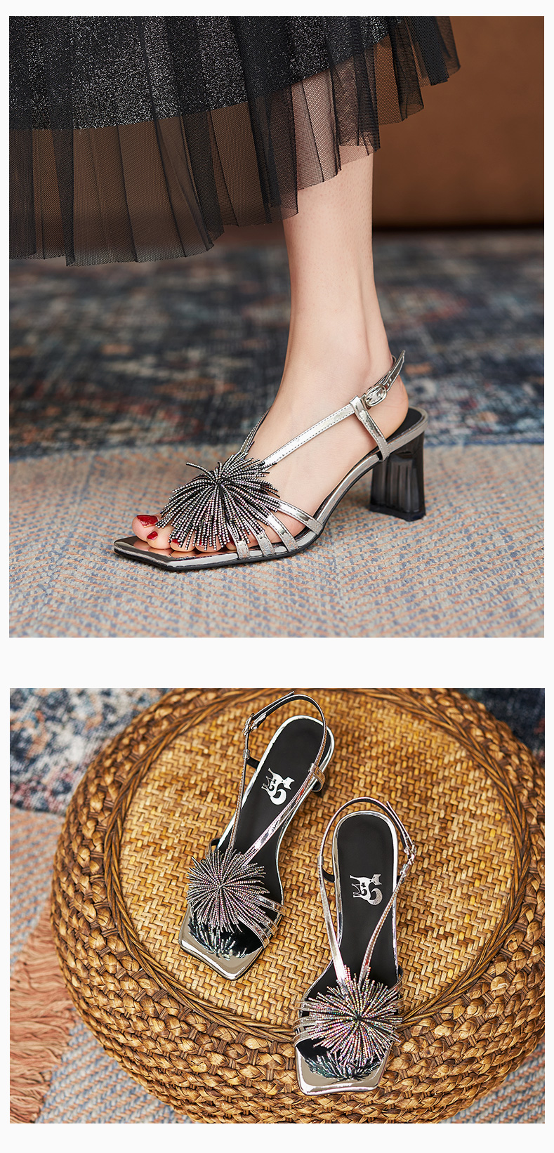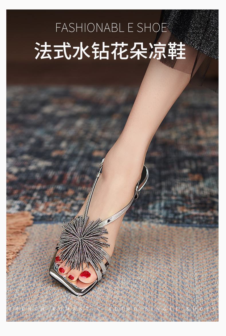 高跟涼鞋女2021年夏季新款仙女風(fēng)氣質(zhì)法式一字帶粗跟露趾時裝涼鞋