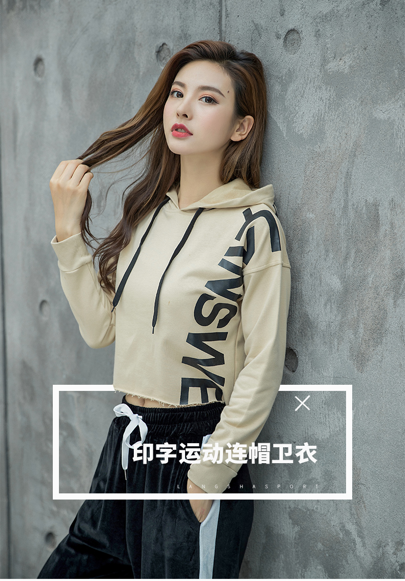 特價浪莎運動衛衣女寬松連帽休閑純棉套頭衫春秋瑜伽服健身長袖