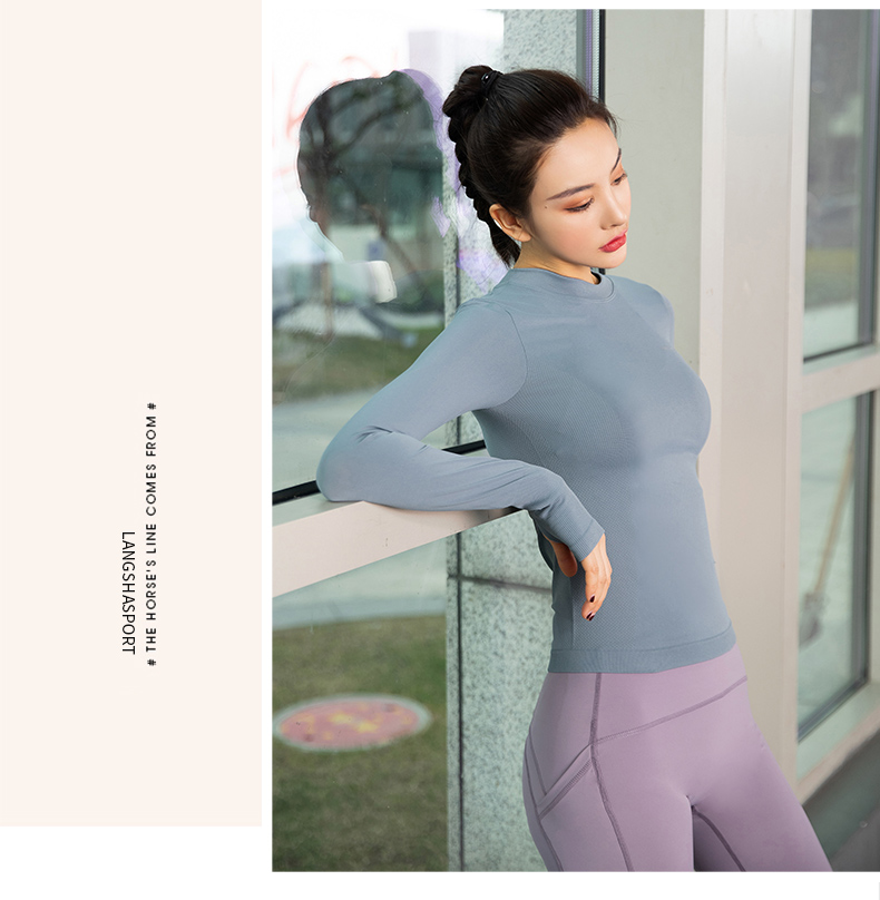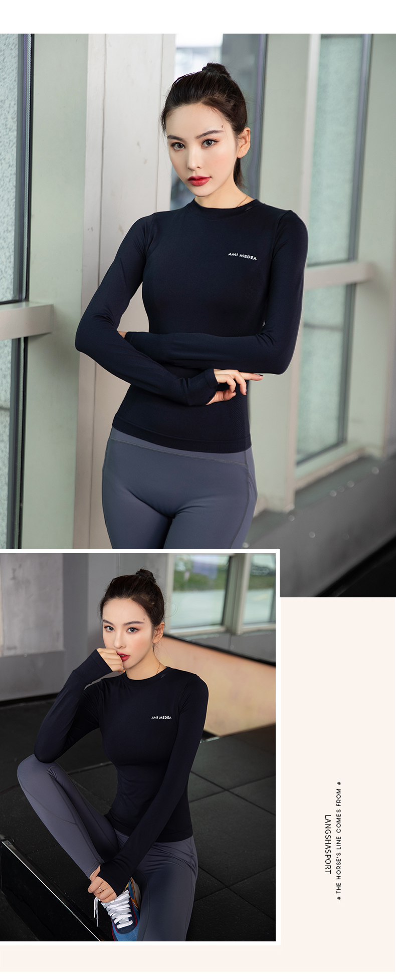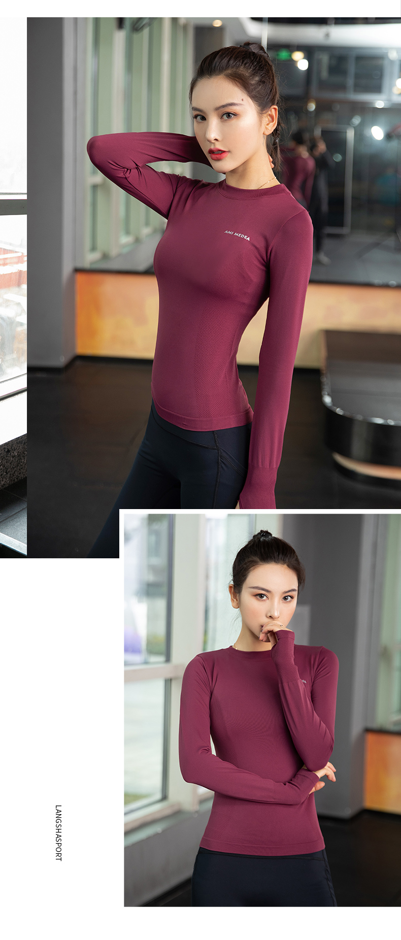 浪莎運(yùn)動(dòng)上衣女修身瑜伽服跑步秋冬吸汗緊身透氣速干新款健身長(zhǎng)袖