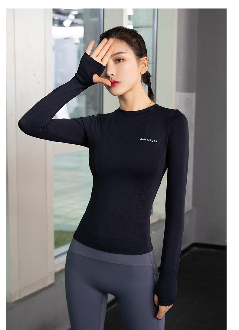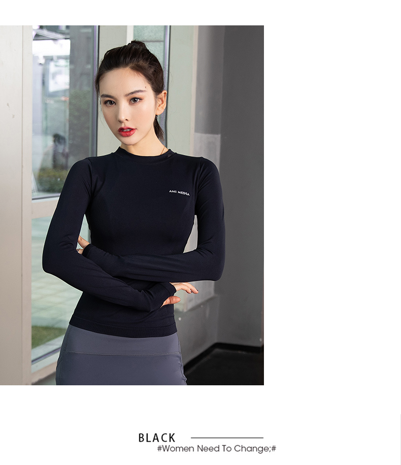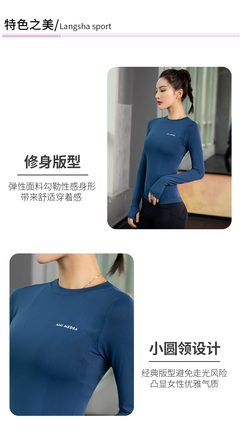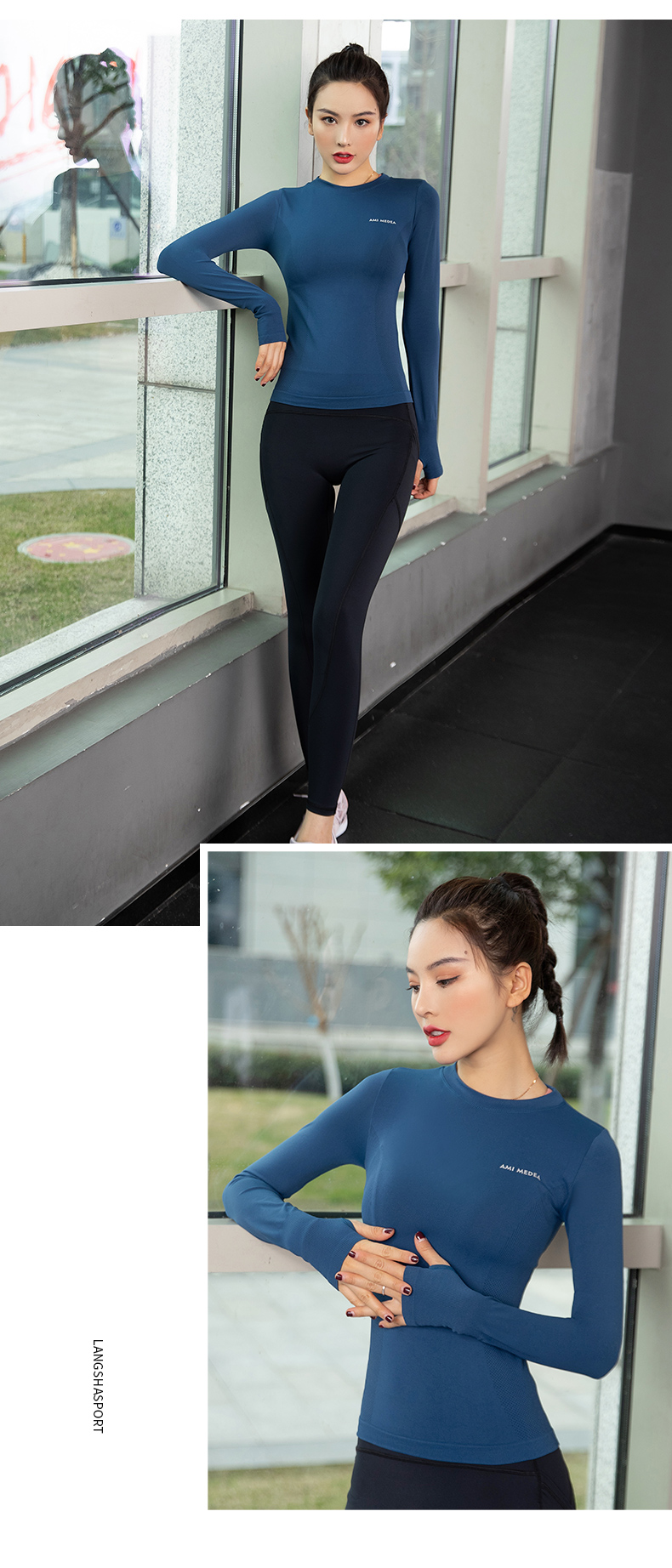 浪莎運(yùn)動(dòng)上衣女修身瑜伽服跑步秋冬吸汗緊身透氣速干新款健身長(zhǎng)袖