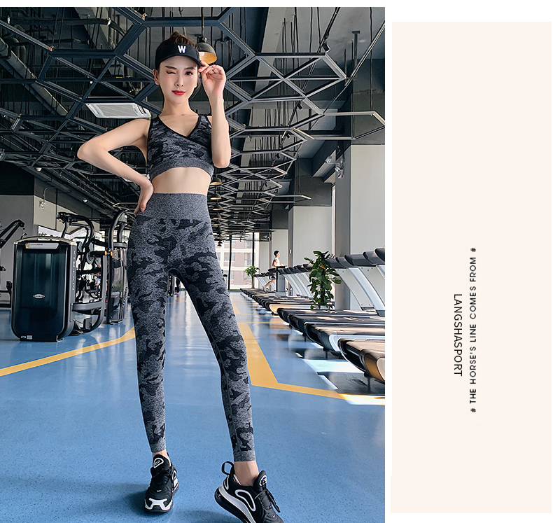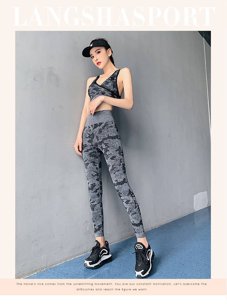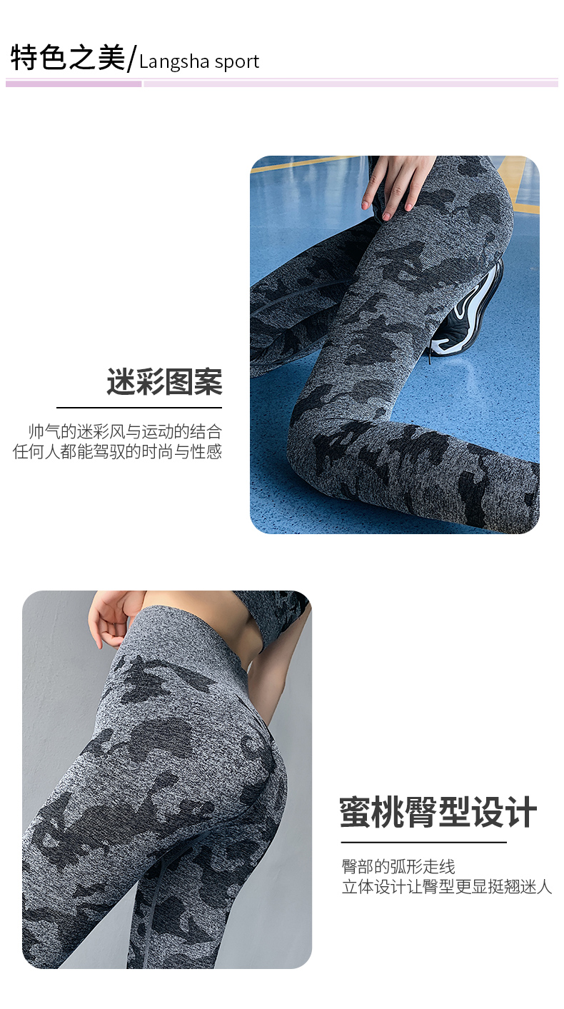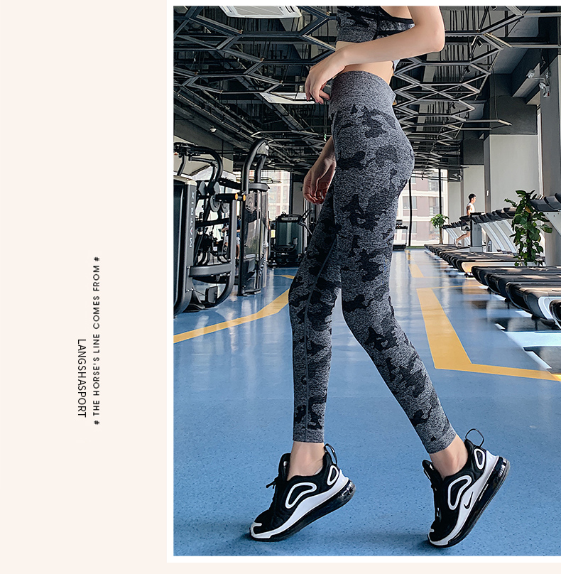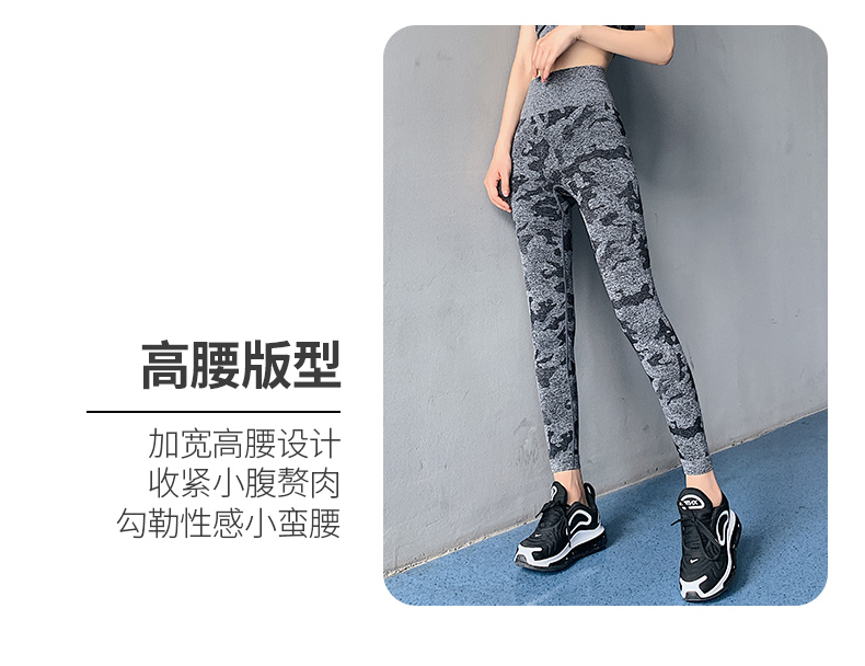 浪莎高腰健身褲女彈力緊身套裝提臀迷彩速干跑步運(yùn)動(dòng)收腹瑜伽褲