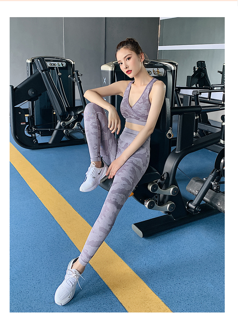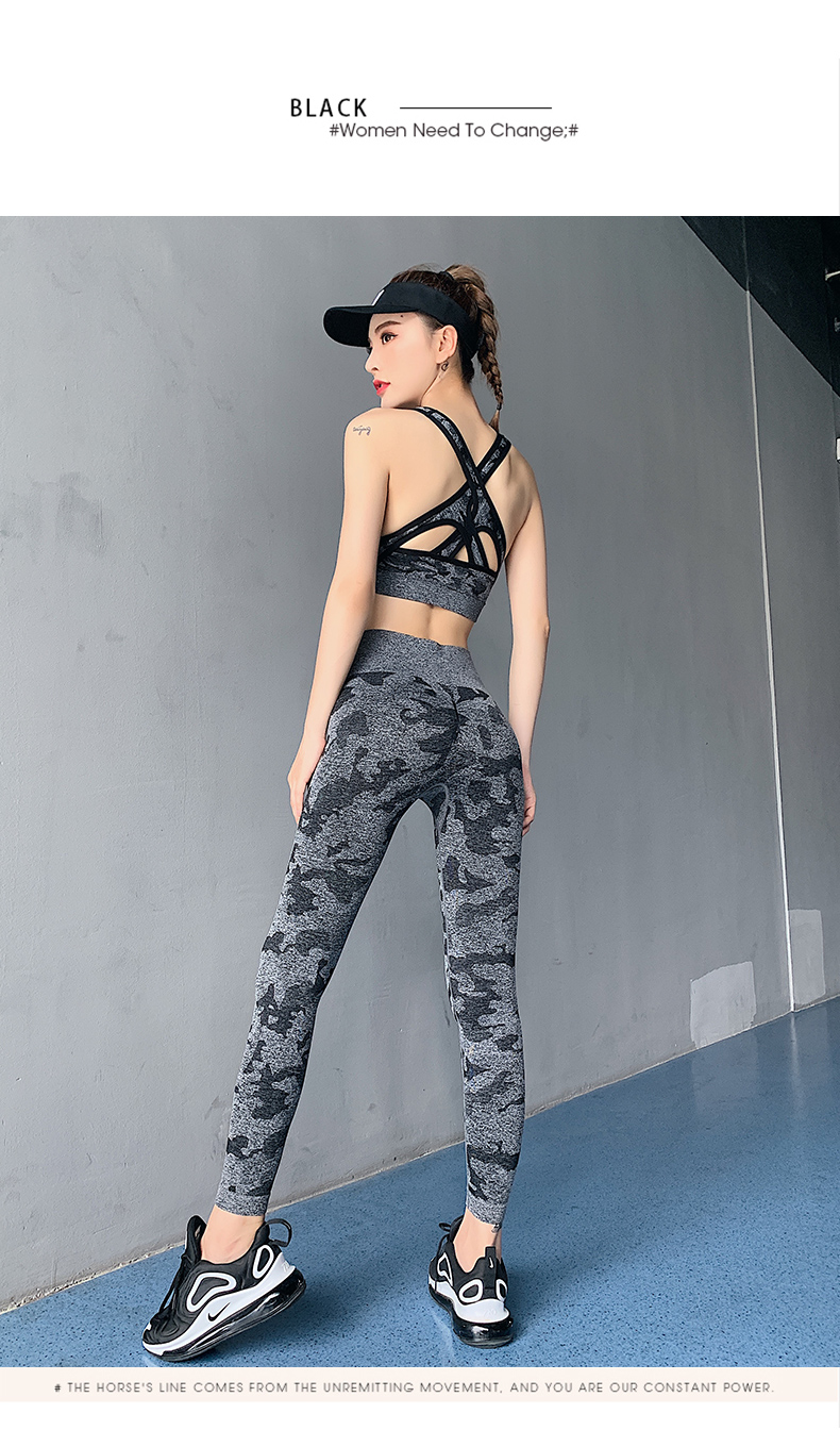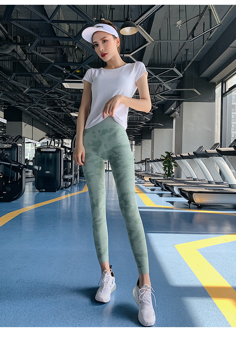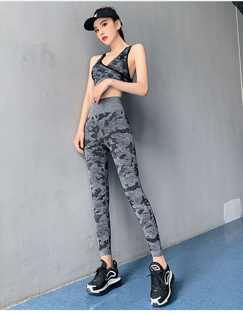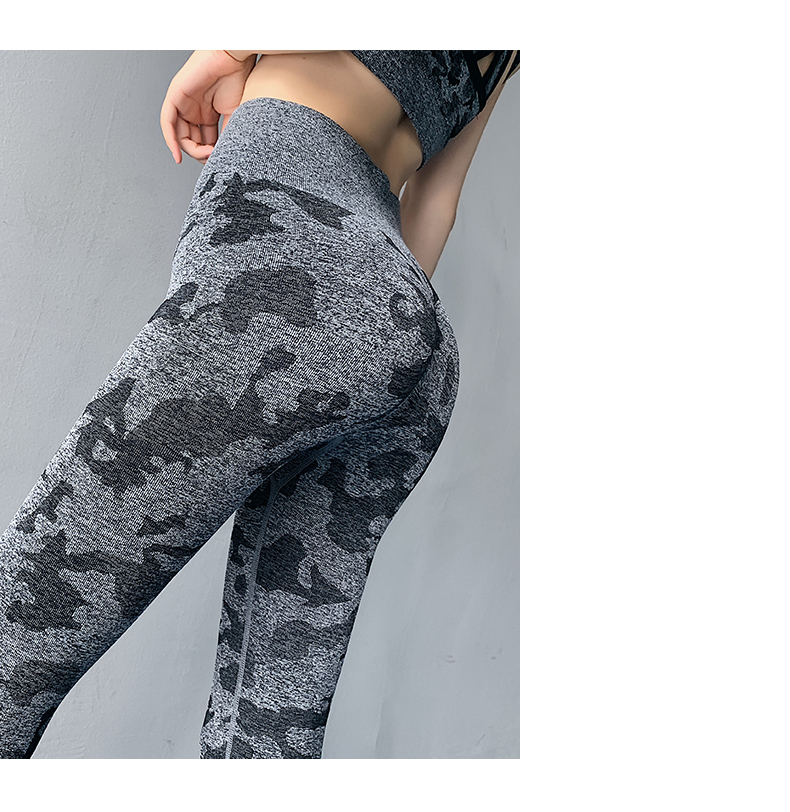 浪莎高腰健身褲女彈力緊身套裝提臀迷彩速干跑步運(yùn)動(dòng)收腹瑜伽褲
