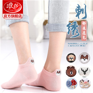 浪莎襪子女士淺口船襪春夏季薄款隱形短襪夏天可愛(ài)刺繡ins潮棉襪