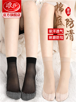浪莎絲襪女薄款春秋水晶絲短襪耐磨防勾絲夏季黑肉色棉底襪子中筒