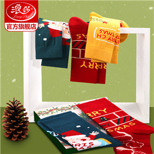 浪莎圣誕襪子女中筒襪秋冬季可愛(ài)本命年紅襪子圣誕節(jié)禮盒加厚棉襪