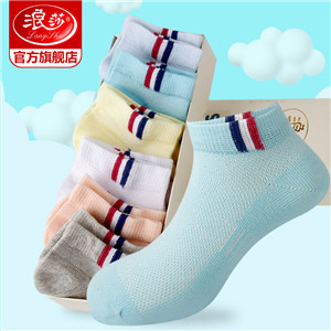 浪莎兒童襪子夏季潮薄款男童女童船襪網(wǎng)眼棉襪短襪3-5-7-9-12歲