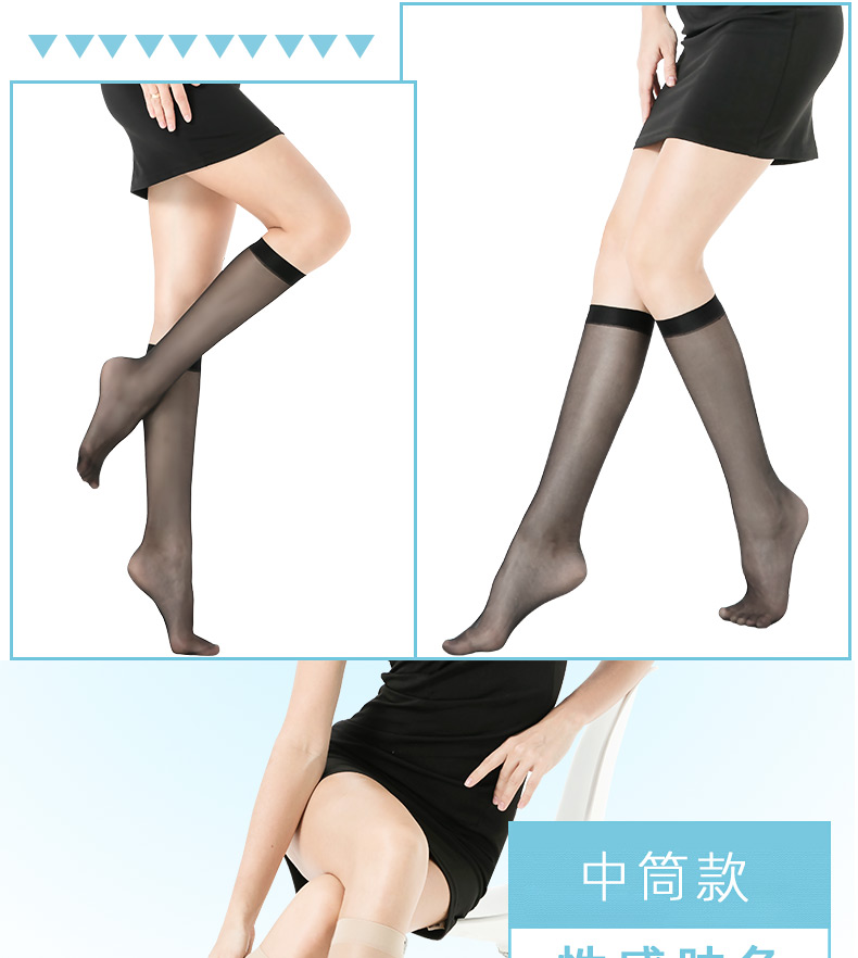 浪莎絲襪女 夏天腳尖透明中筒襪 防勾絲過膝長筒襪薄款小腿襪