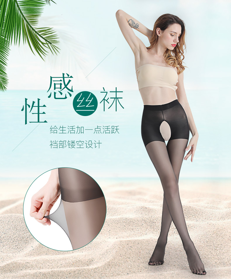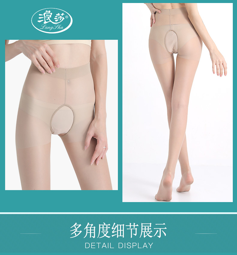 浪莎絲襪女性感襠部鏤空黑絲連褲襪 夏季隱形薄款防勾絲打底襪
