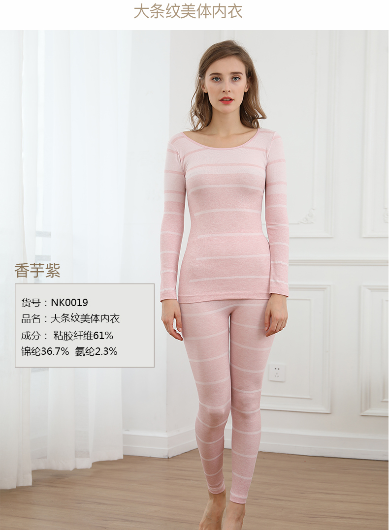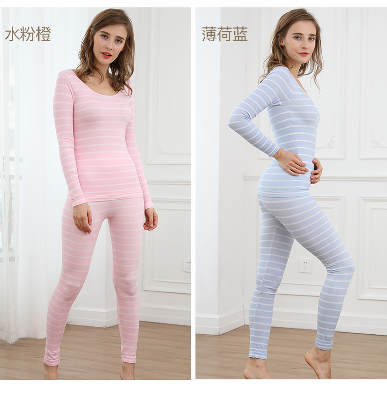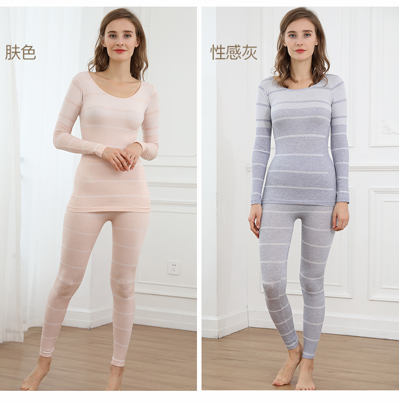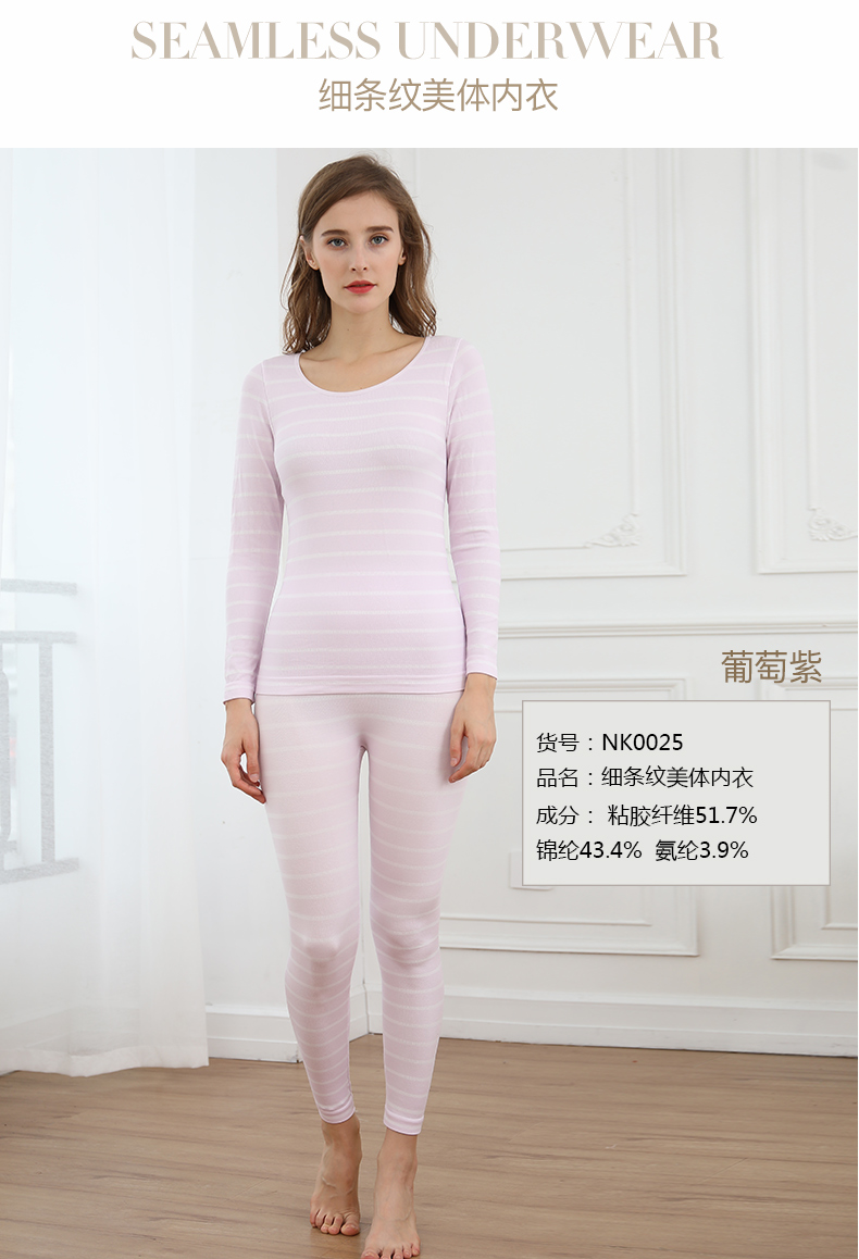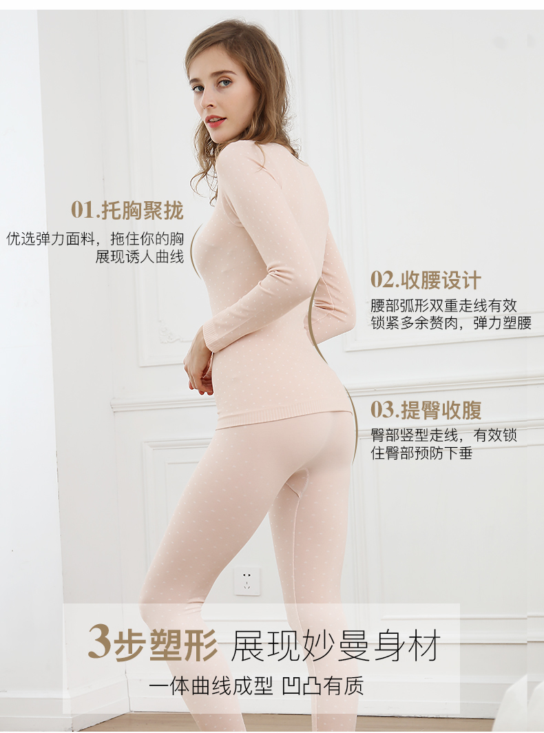 浪莎無(wú)縫提花美體保暖內(nèi)衣套裝女士緊修身薄款秋衣秋褲性感打底冬