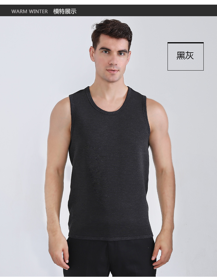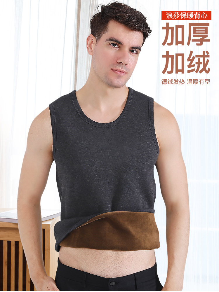 浪莎自發(fā)熱德絨保暖背心男士加厚加絨冬季上秋衣單件打底保暖內(nèi)衣