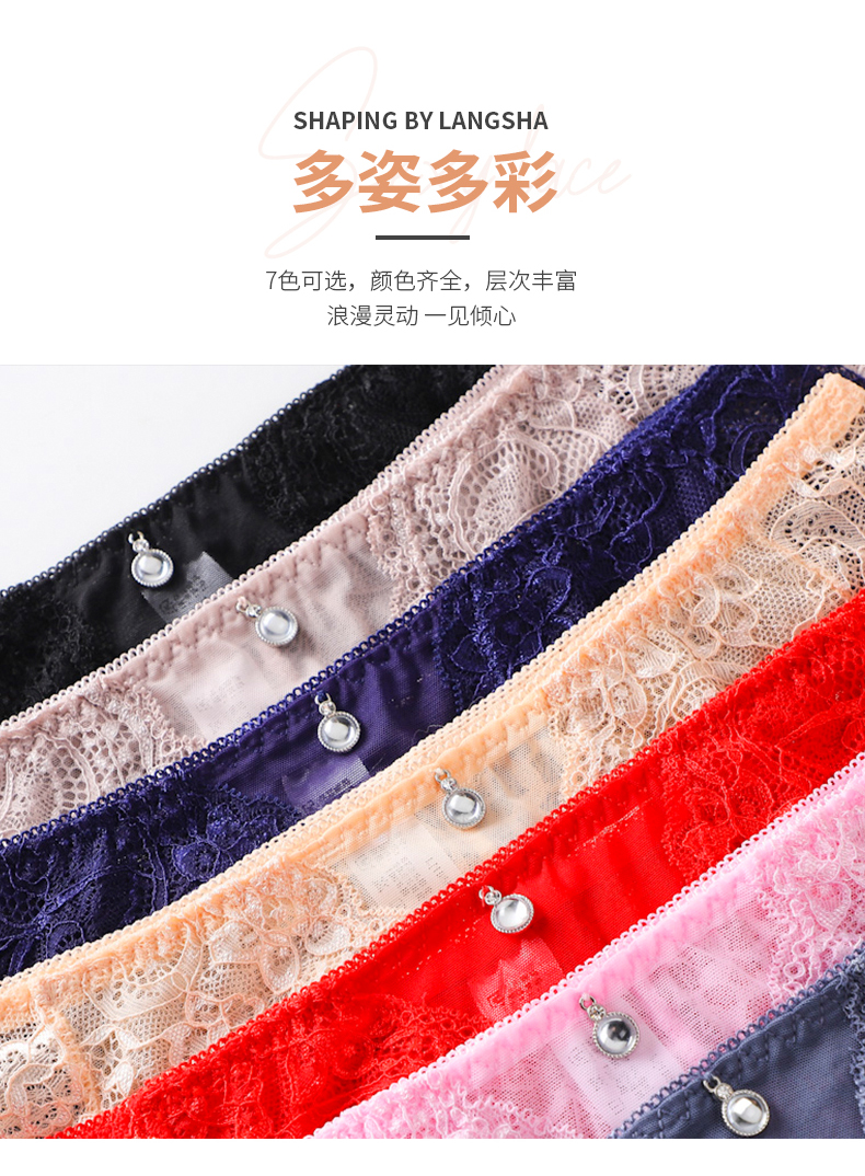 浪莎蕾絲內褲女士性惑春夏款純棉底襠性感無痕透氣鏤空三角短褲頭