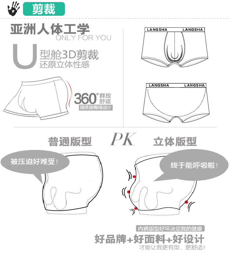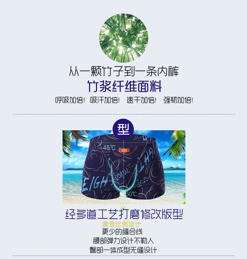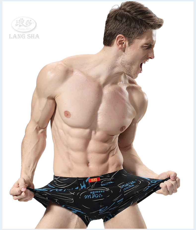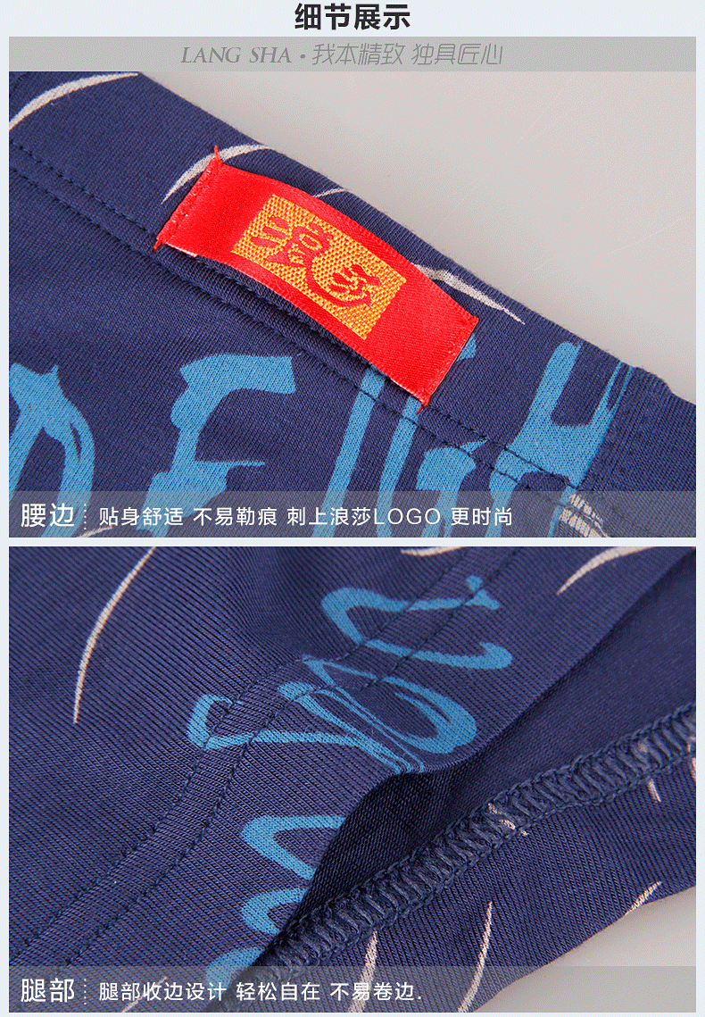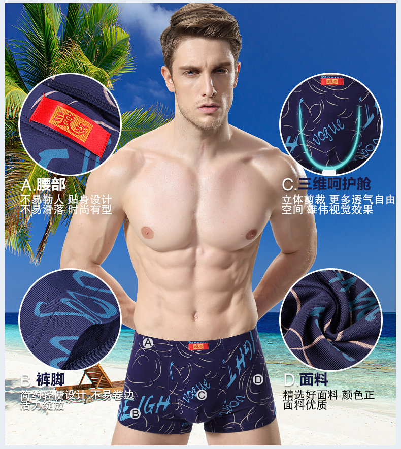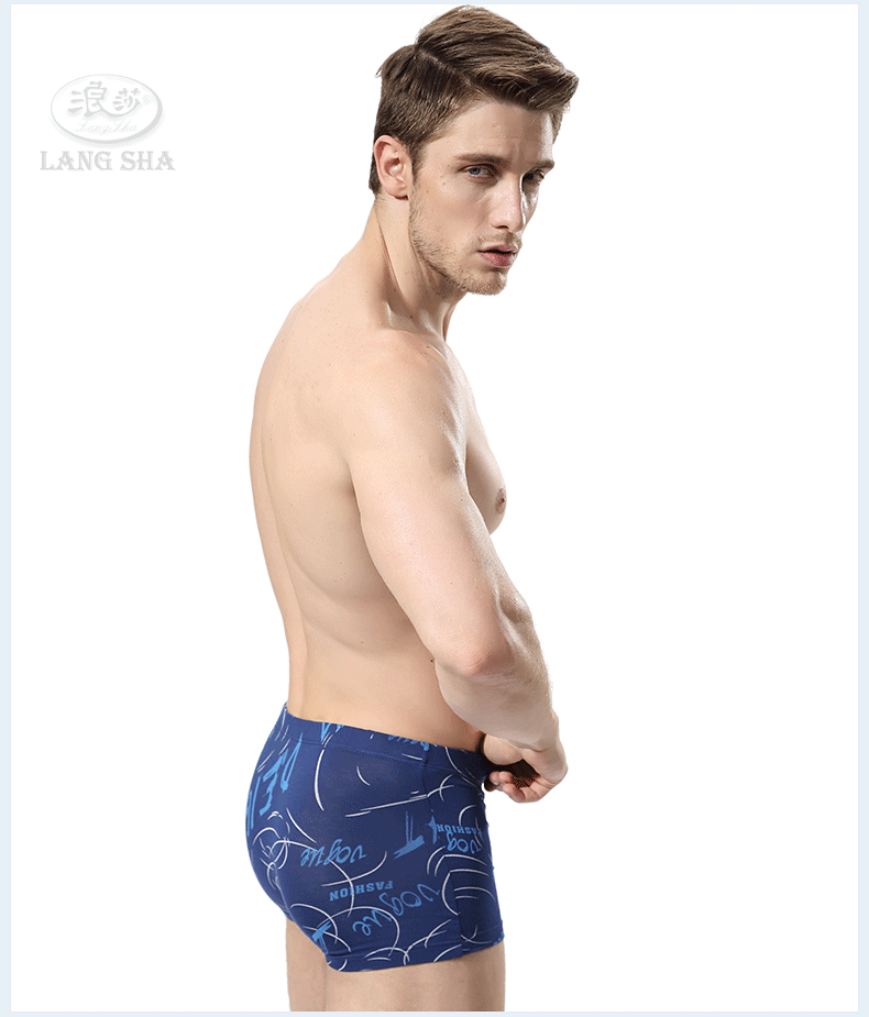 浪莎內(nèi)褲 男士平角褲中腰青年春夏透氣U凸印花四角短褲衩男